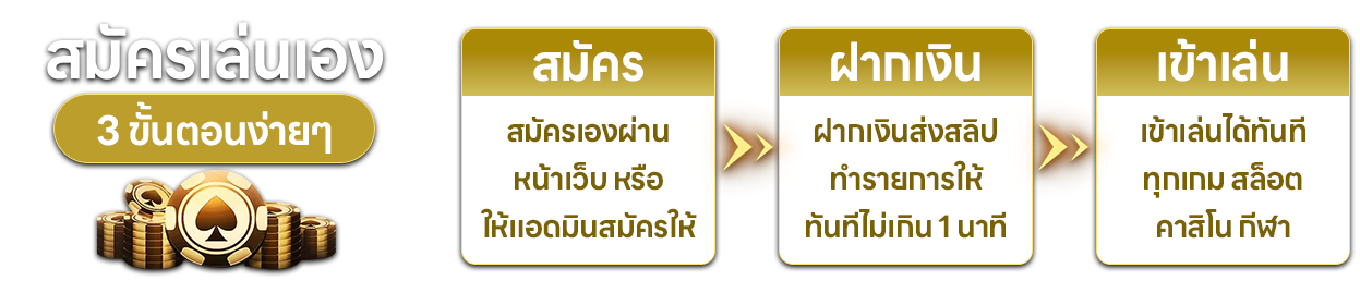 ตอบ : - สมัครผ่านหน้าเว็บไซต์ กรอกข้อมูลส่วนตัวพื้นฐาน เบอร์โทรศัพท์ และบัญชีธนาคาร รอรับ username/password ภายใน 3 นาที เริ่มเดิมพันได้ทันที