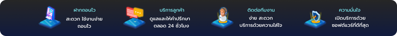 - ทีมงานบริการ 24 ชั่วโมงผ่านหลายช่องทาง